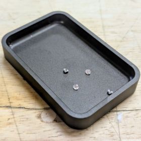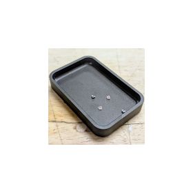 Black metal stone tray, used to hold stones and other small parts your working at the bench with.  3" x 2" x 1/2"